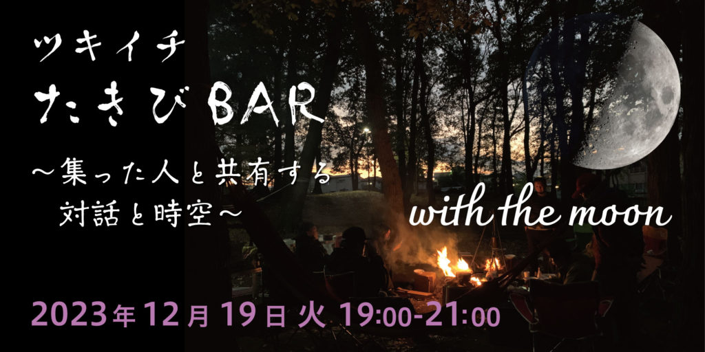 年末&クリスマスシーズンの12月はなんと!天文方さんとのスペシャルコラボ企画「ツキイチ たきびBAR with the moon」と題して、たきび映像ではなく、月を囲んで対話を楽しみたいと思います。ぜひおこしください!